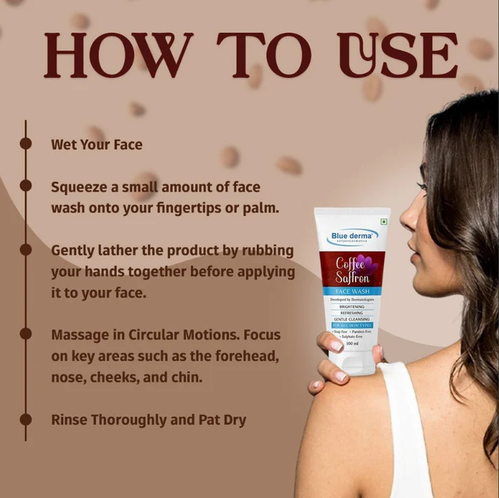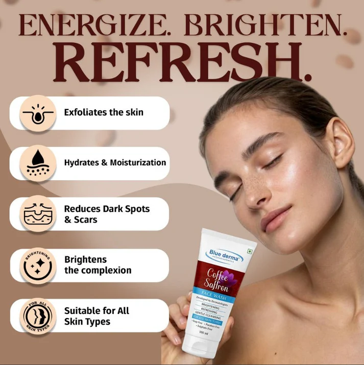 Blue Derma Coffee & Saffron Face Wash | Gentle Cleansing, Brightening & Refreshing 100 ml